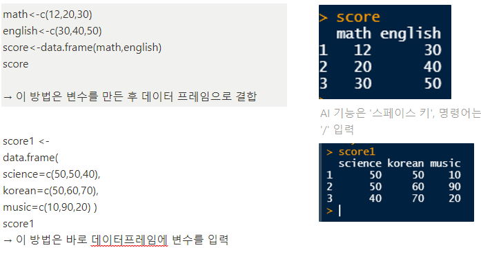 첫 번째, 변수를 만든 후 합쳐서 표 만들기