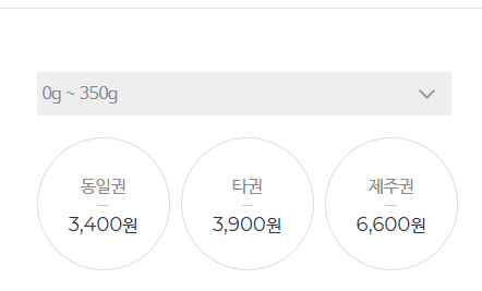 350g만 까지만 동일권 3,400원 타권 3,900원입니다.