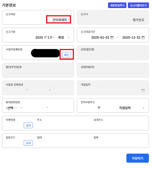 네 번째, 신고대상이 일반사업자로 되어있는데 간이과세자로 변경